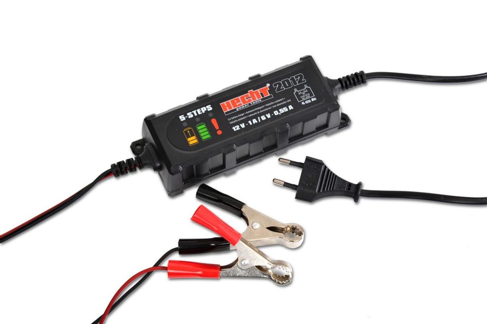 HECHT 2012 este un încărcător complet automat pentru alimentarea bateriilor cu plumb-acid (Pb, LEAD-ACID), gel și AGM cu o tensiune de 6 sau 12 V și o capacitate de la 4 la 60 Ah, adică majoritatea bateriilor utilizate, de exemplu, în automobile și motociclete. Cu un pic de exagerare s-ar putea spune că încărcătorul este potrivit pentru toți cei care pot face distincția între roșu și negru, astfel încât să conecteze bornele încărcătorului la contactele corecte de pe baterie. Încărcătorul se ocupă de toate celelalte. Odată conectat, acesta detectează tipul de baterie și selectează tensiunea corectă și cel mai potrivit mod de încărcare. Nu contează dacă doriți să încărcați o baterie de motocicletă de 6 V sau o baterie mare de 12 V, trebuie doar să conectați încărcătorul la contactele bateriei, singura preocupare a operatorului este să mențină polaritatea corectă la conectare. Când bateria este complet încărcată, acesta trece automat în așa-numitul mod de întreținere, în care verifică doar starea bateriei și o menține în permanență complet încărcată. Progresul încărcării și starea bateriei sunt indicate de indicatoare luminoase. Încărcătorul este, de asemenea, capabil să detecteze unele defecțiuni ale bateriei, cum ar fi scurtcircuitul, tensiunea scăzută sau ridicată etc.