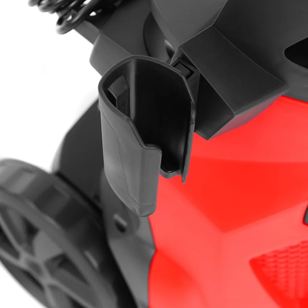 Modelul este echipat cu un duză variabilă, un rezervor integrat pentru detergent cu duză de spumare și un suport practic pentru accesorii. Datorită greutății reduse și roților, este ușor de transportat.