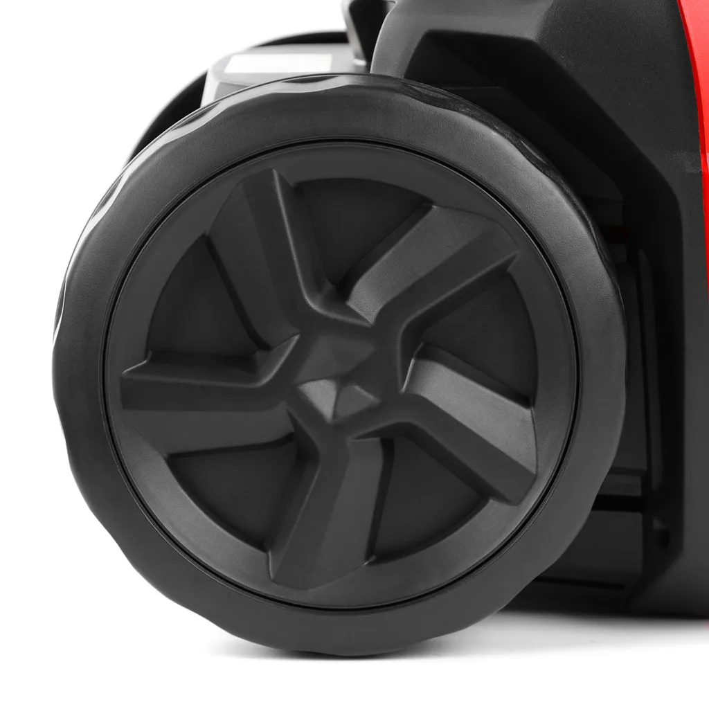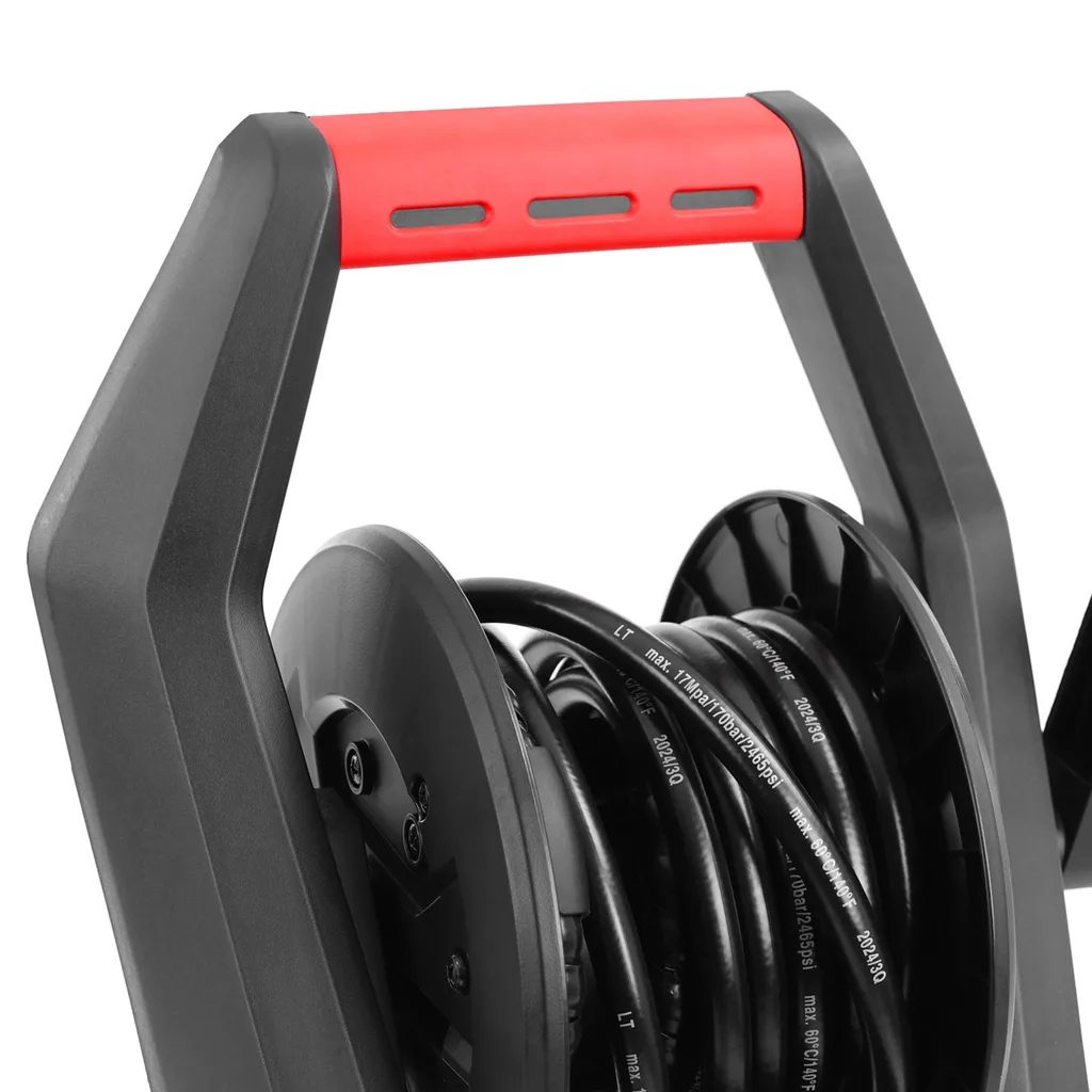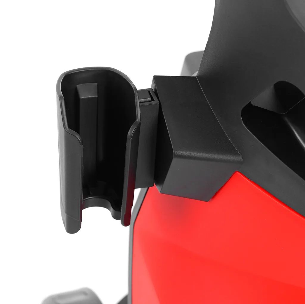 Datorită roților integrate și greutății reduse de 9 kg, dispozitivul este foarte ușor de manevrat. Tamburul practic pentru furtun, suportul pentru accesorii și rezervorul de detergent cu duză de spumă asigură confort în timpul lucrului.