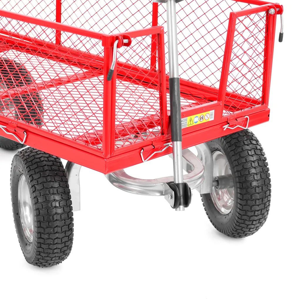 Cărucior multifuncțional pentru lucru nu doar în grădină. Mânerul este prevăzut cu un sistem de demontare rapidă, astfel încât, după detașarea acestuia, poate fi utilizat pentru atașarea la diverse tractoare de grădină și la alte utilaje.