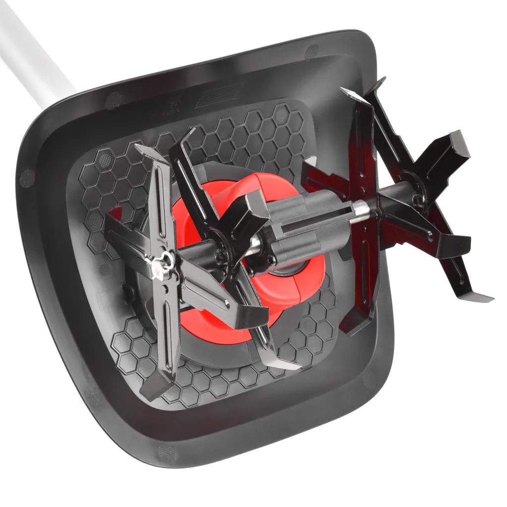 Cultivator cu acumulator pentru afânarea solului în paturi de flori și sere. Este alimentat de un acumulator de 20 V (nu este inclus), datorită căruia nu sunteți limitat de cablurile de alimentare atunci când lucrați. Lamele de otel au o adâncime de lucru de 20 cm și sunt capabile să afâneze solul la o adâncime de 15 - 20 cm.